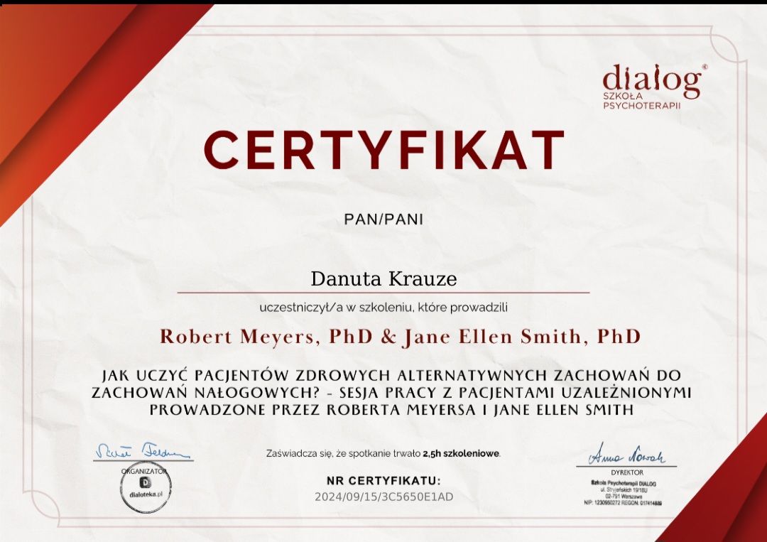 Moją pracę poddaję regularnej superwizji u certyfikowanych superwizorów.
